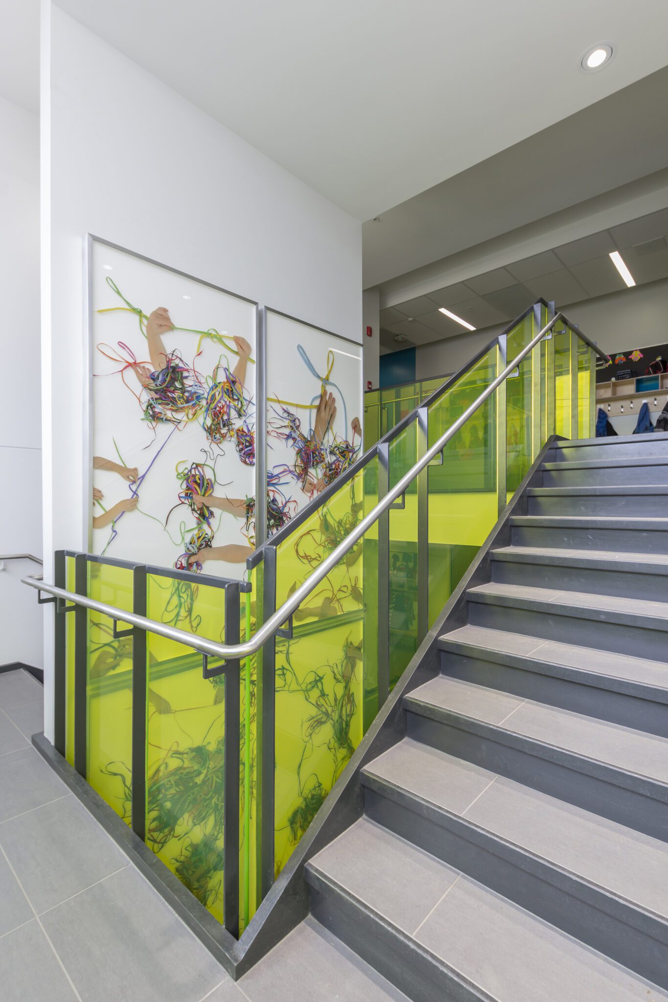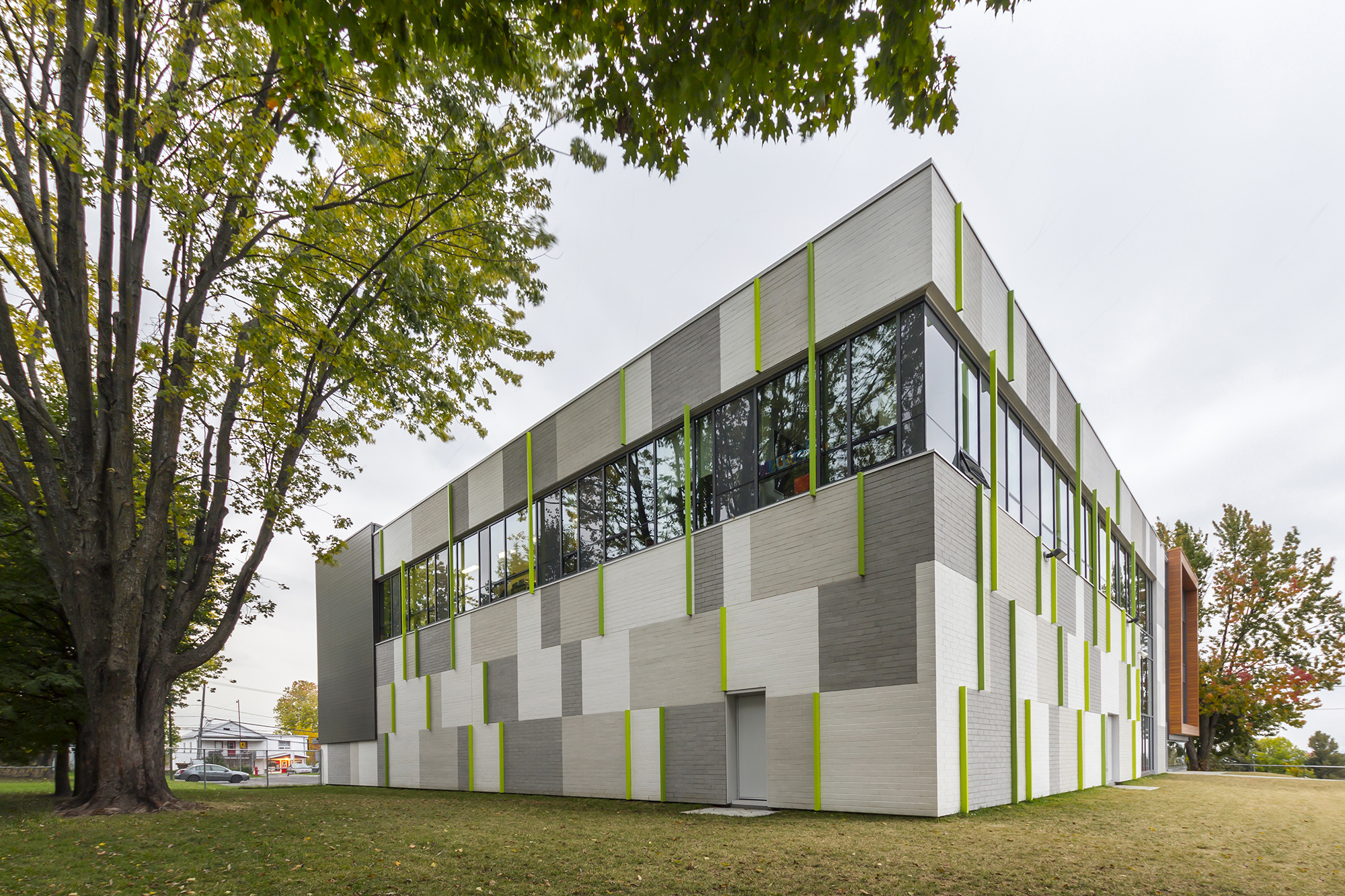 L’agrandissement de l’établissement scolaire regroupe un gymnase double et les locaux satellites à ce dernier (rangement, vestiaires, etc.), une nouvelle bibliothèque, onze nouvelles classes dont trois classes de maternelles, un une nouvelle salle de professeurs, des locaux de rencontre et bureaux pour les professionnels et un monte-personne. En fait, en raison du principe constructif de l’existant (split-level), il était requis d’ajouter un monte-personne dans l’agrandissement de manière à permettre que l’école entière soit désormais considérée comme « sans obstacles » pour les personnes à mobilité réduite.