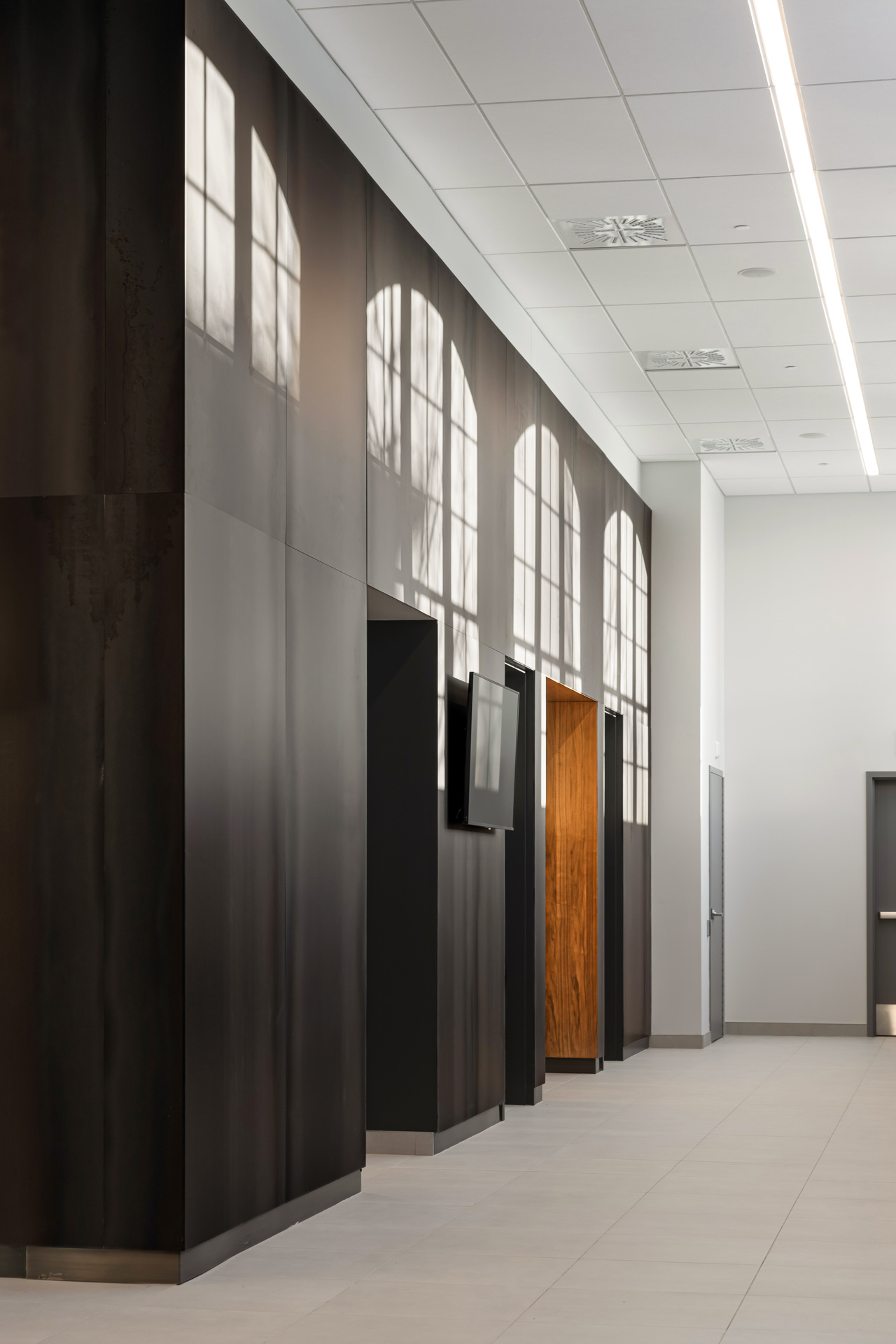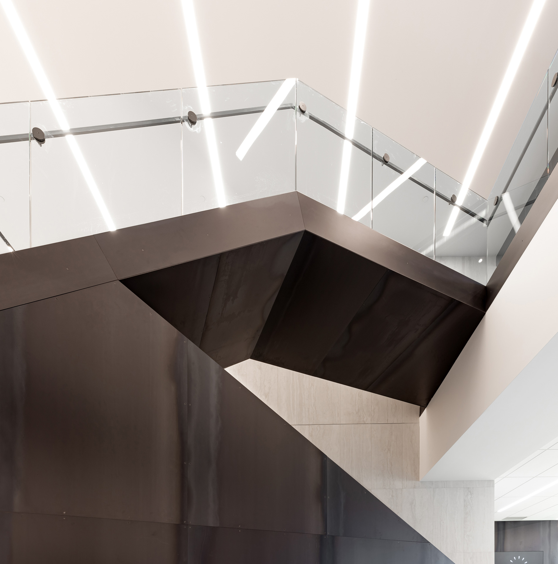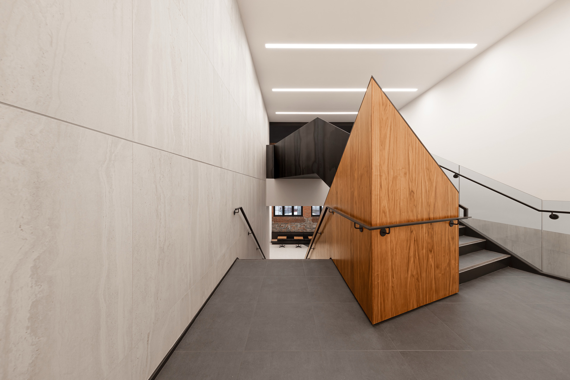 La réhabilitation du bâtiment F.X. Drolet constitue une intervention architecturale audacieuse, célébrant le patrimoine bâti de Québec tout en répondant aux besoins actuels de la communauté. Situé dans le quartier historique de Saint-Roch, cet édifice industriel de 1908 a été méticuleusement restauré et transformé pour accueillir la Cour municipale de Québec et un point de service du Service de police de la Ville de Québec (SPVQ). Les façades en briques rouges et les détails ornementaux d’origine ont été sublimés grâce à une restauration rigoureuse, mettant en valeur l’authenticité matérielle du lieu. À l’intérieur, les murs en briques apparentes et les grandes ouvertures renforcent une esthétique chaleureuse et lumineuse.