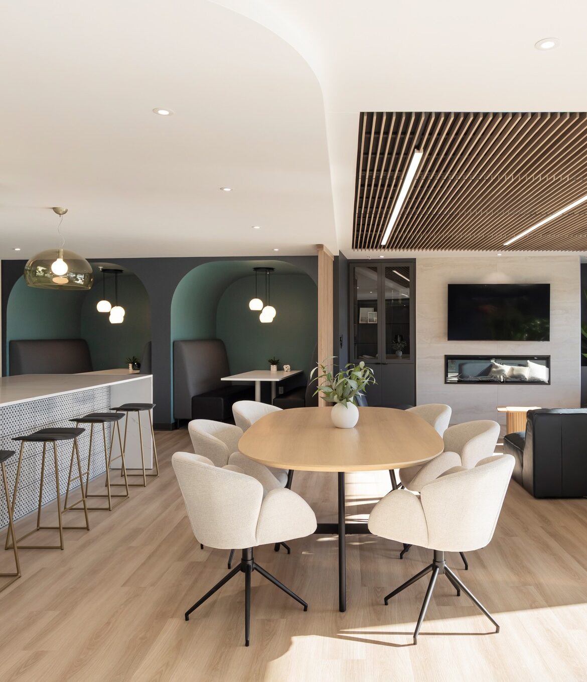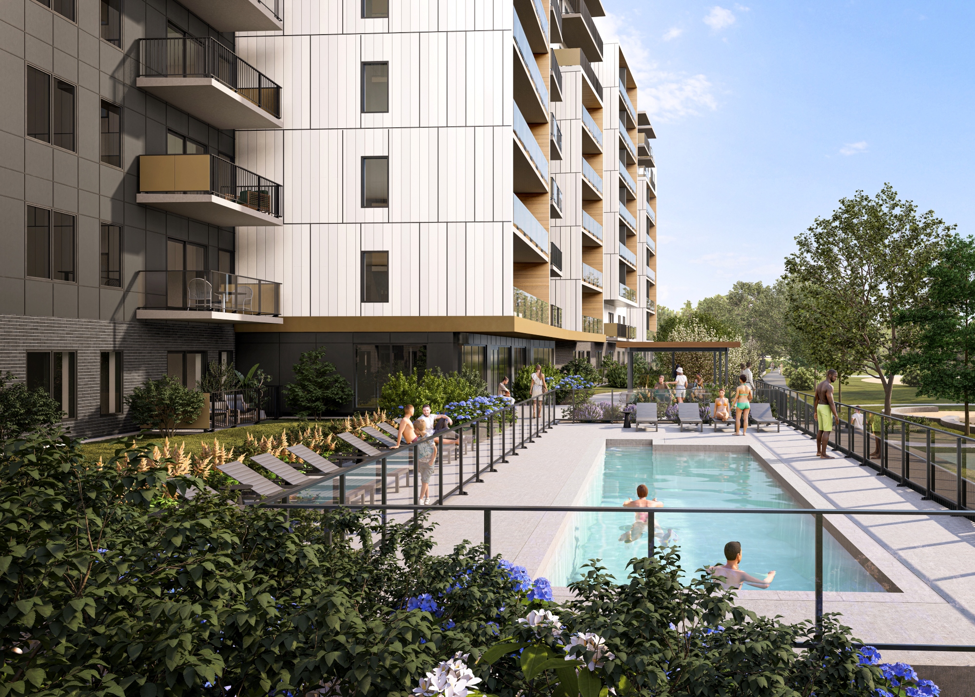 Les espaces communs, baignés de lumière naturelle grâce aux grandes baies vitrées, offrent des lieux de vie conviviaux et apaisants. Les résidents peuvent profiter d’une salle de sport moderne, d’un espace détente et d’une piscine intérieure, le tout dans un décor contemporain aux lignes sobres et élégantes.