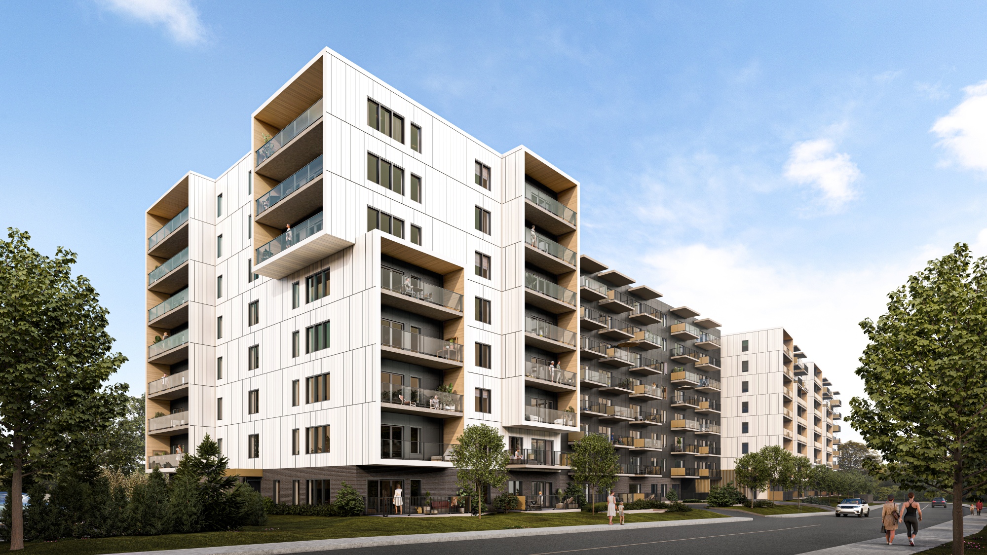 L’ALLIÉ se distingue par son architecture moderne et raffinée, conçue pour offrir confort, luminosité et bien-être aux résidents. Les bâtiments arborent des lignes épurées, de larges fenêtres et des matériaux nobles qui s’intègrent harmonieusement au paysage verdoyant du quartier UMANO à Lévis.
